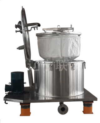 待分離的物料經(jīng)進(jìn)料管進(jìn)入高速旋轉(zhuǎn)的轉(zhuǎn)鼓內(nèi),在離心力的作用下,物料均布在過濾介質(zhì)上進(jìn)行脫液分離,液相透過固相物料和濾網(wǎng)縫隙,經(jīng)鼓壁孔甩至機殼空間,從出液口排出機外,固相物料截留在轉(zhuǎn)鼓內(nèi)形成濾餅。停機后,由專用吊具將濾袋連同濾餅一起吊出至指定地點,松開卸料口,將濾餅卸出。